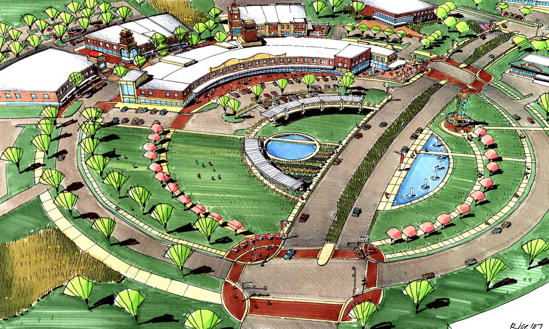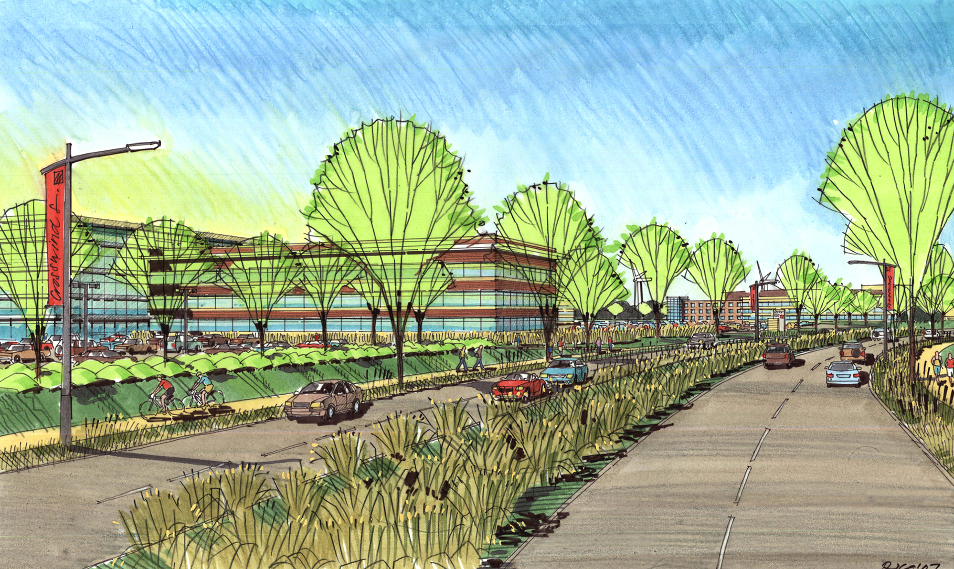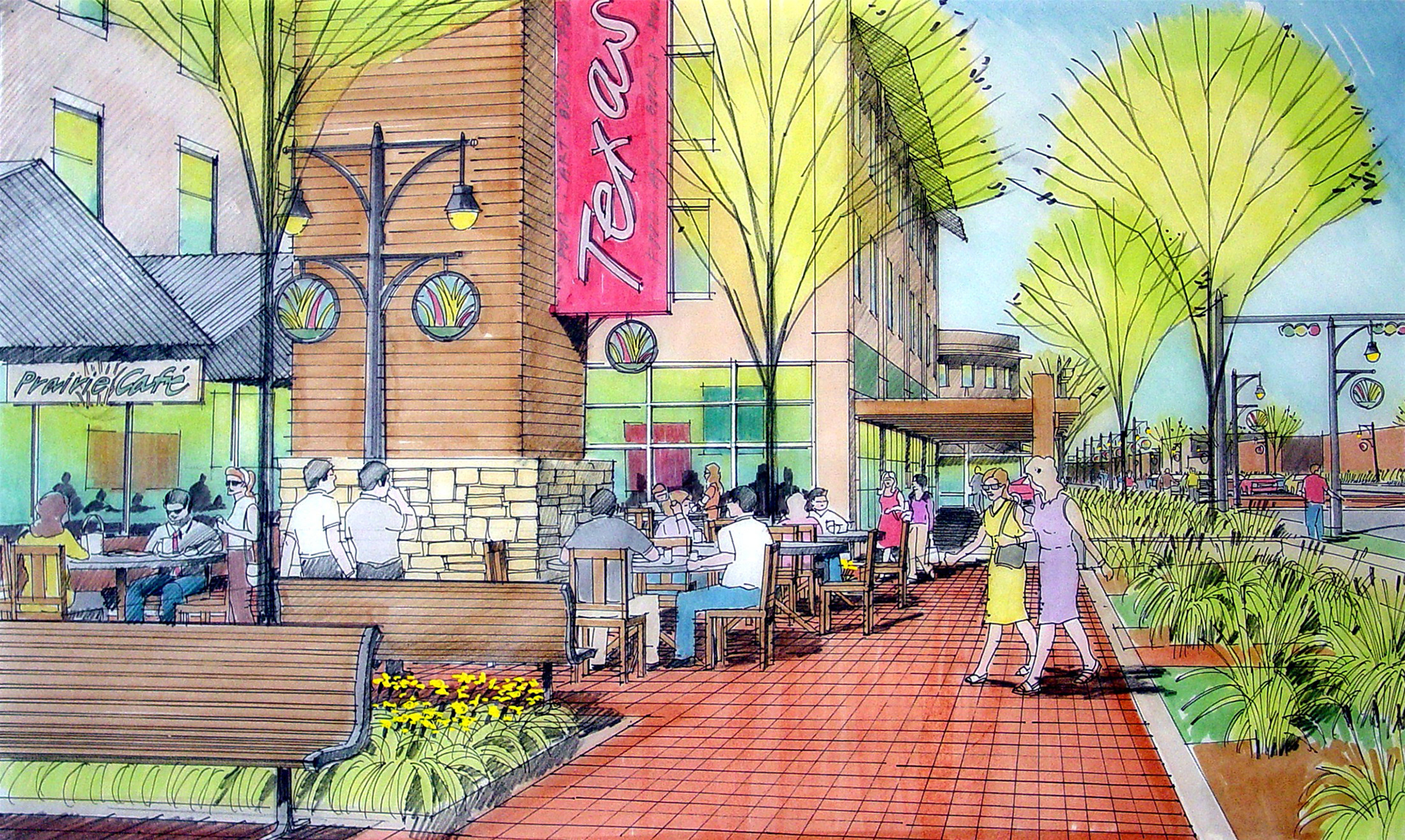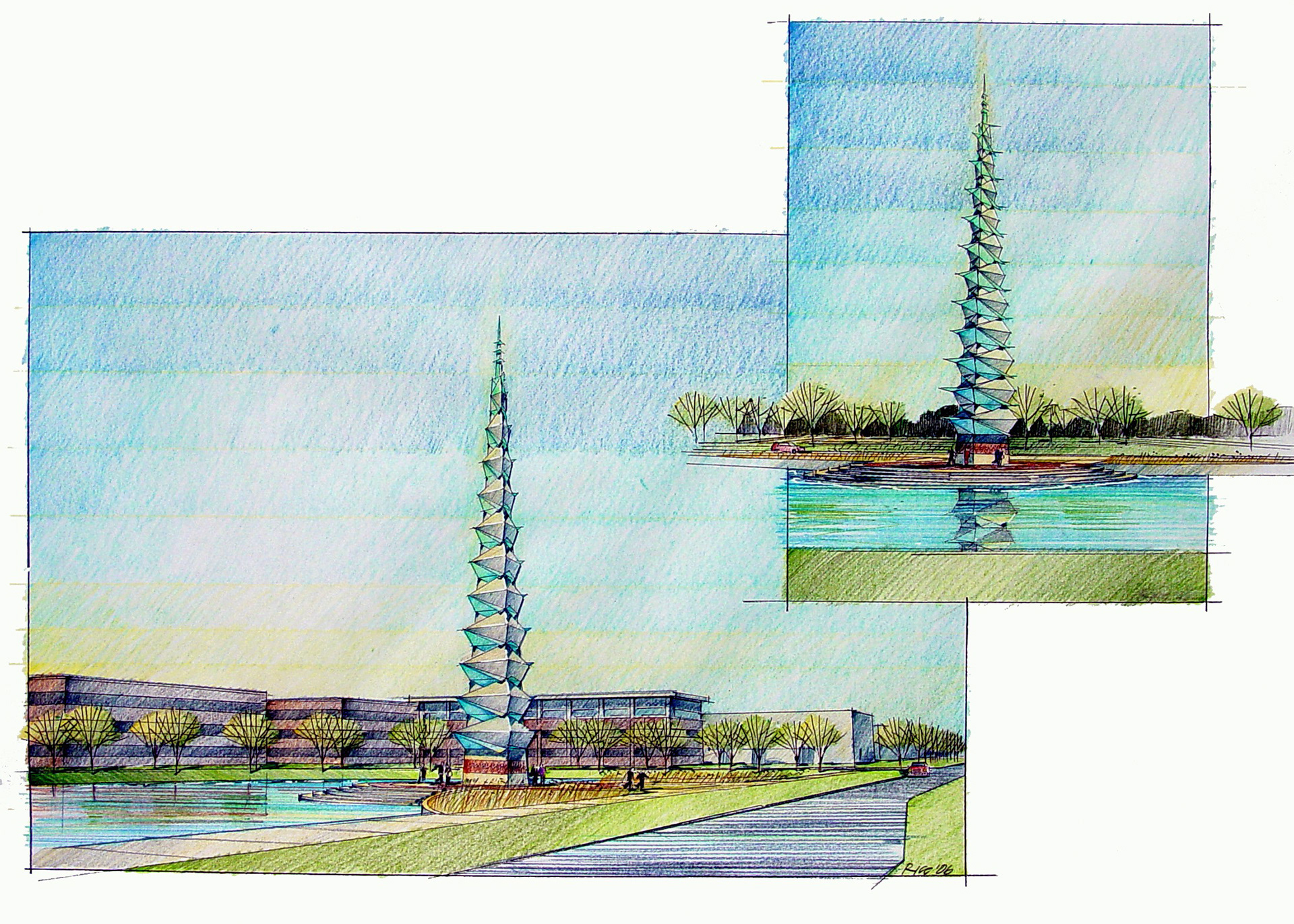 A variety of graphics utilizing analog drawing methods. Media: Ink on trace or bond and rendered with either marker or prismacolor pencil.