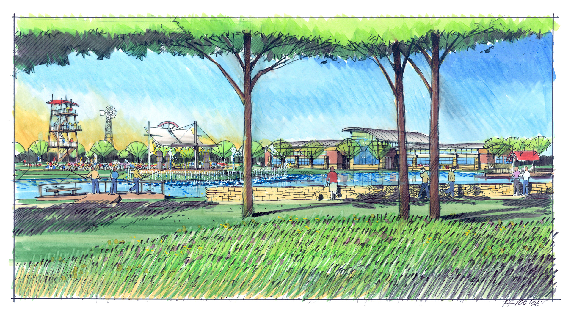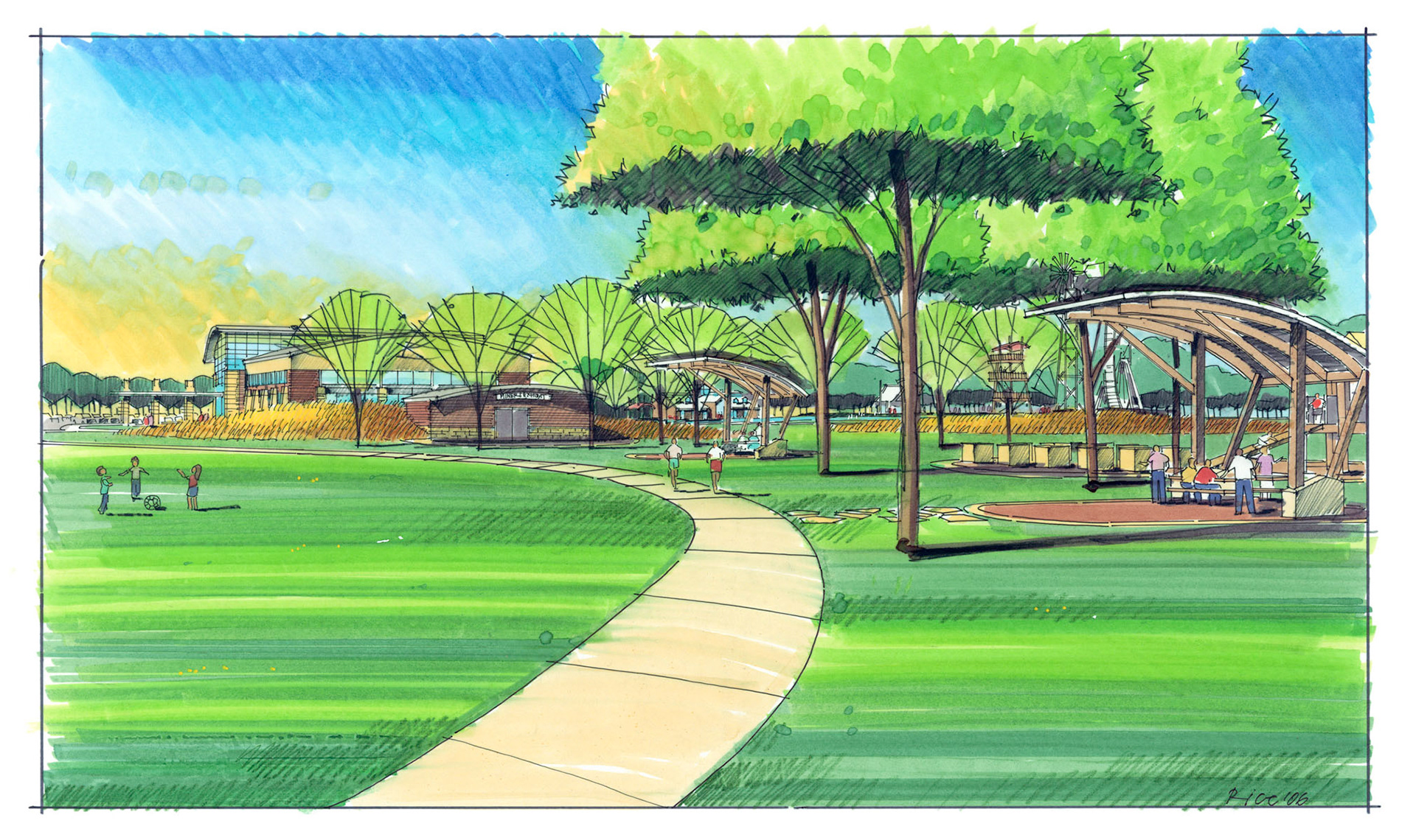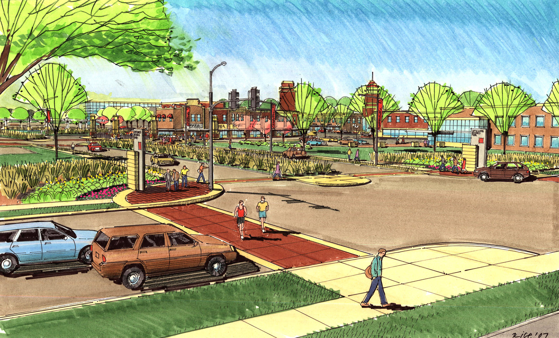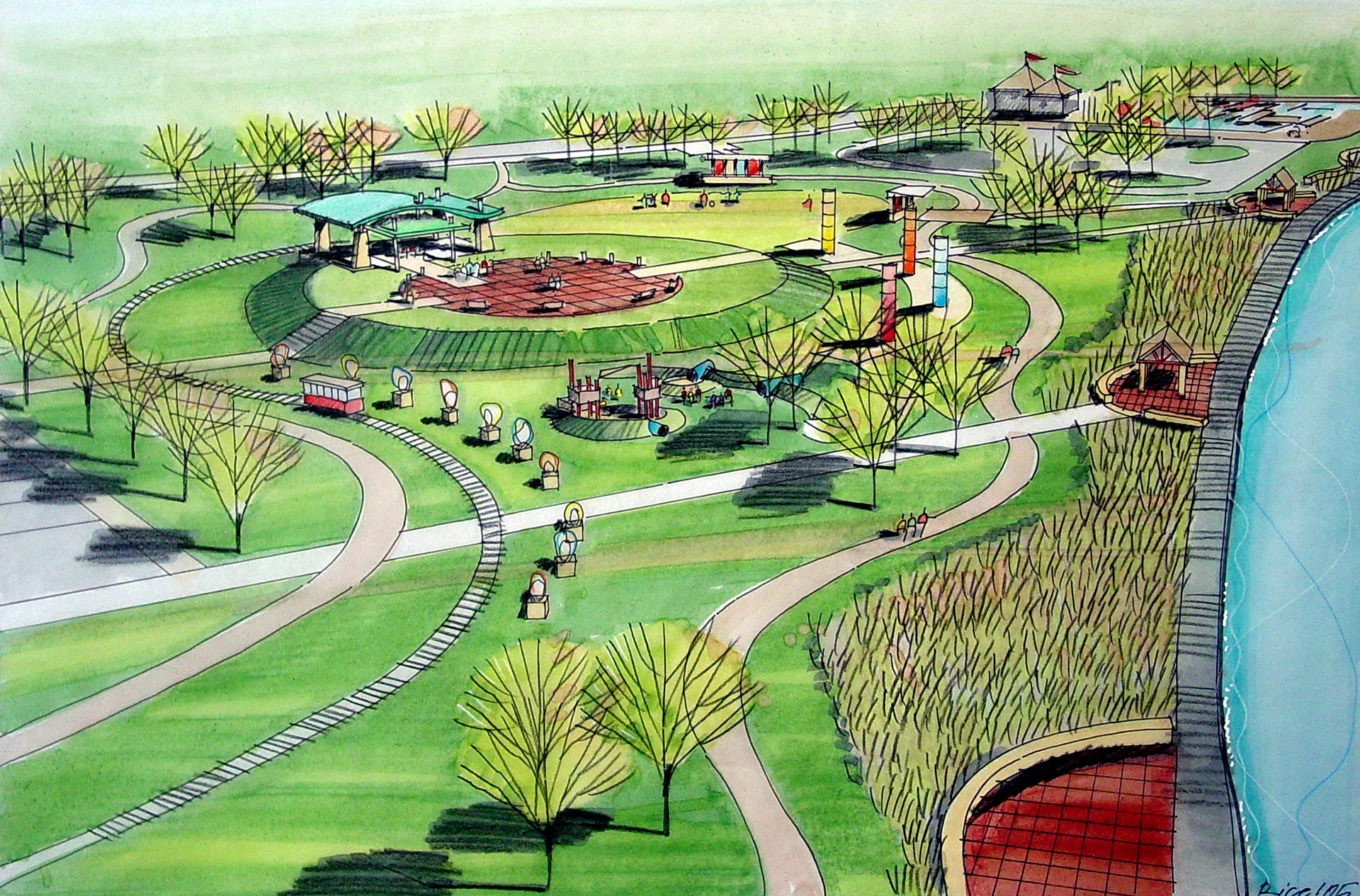 A variety of graphics utilizing analog drawing methods. Media: Ink on trace or bond and rendered with either marker or prismacolor pencil.