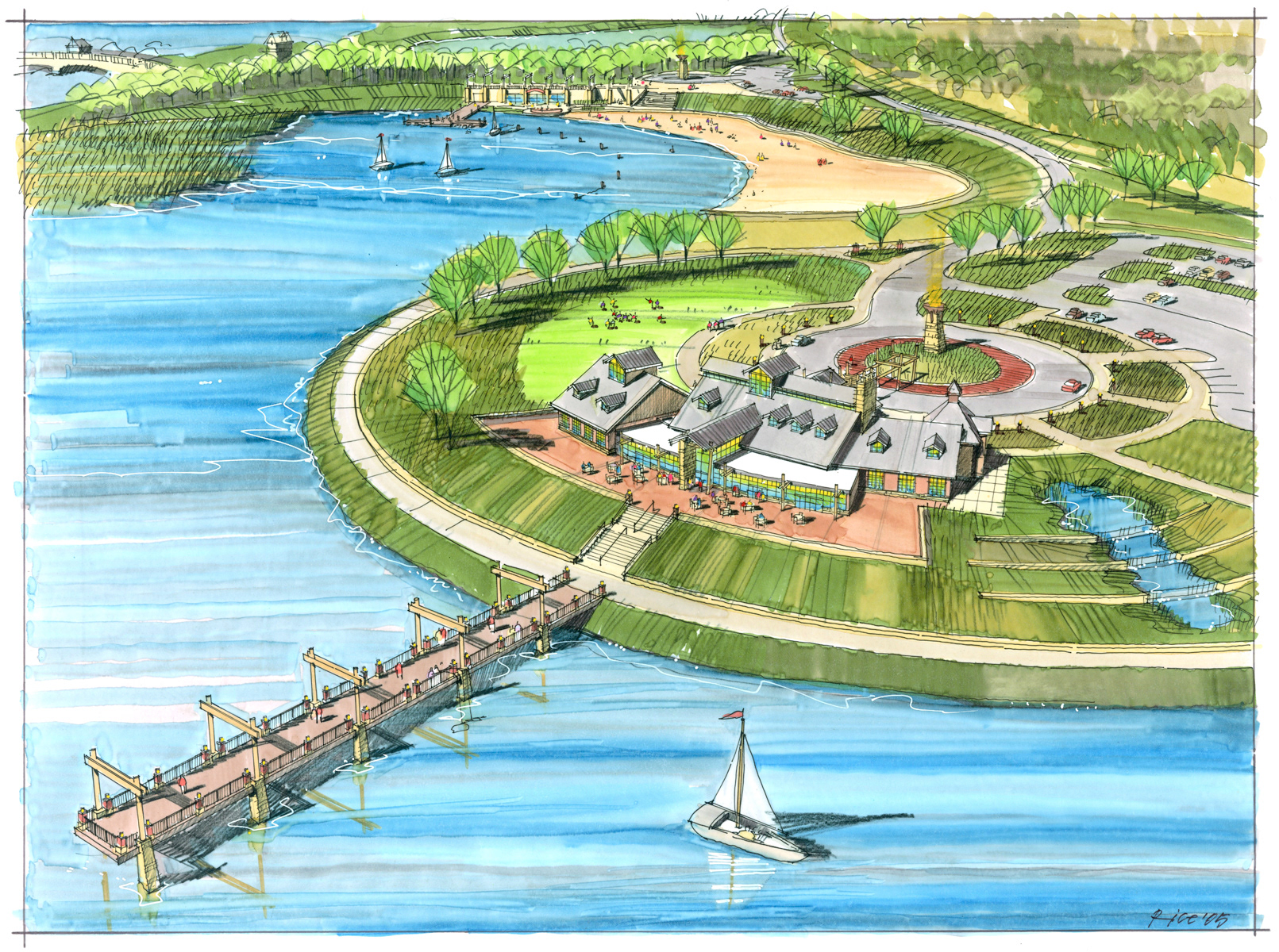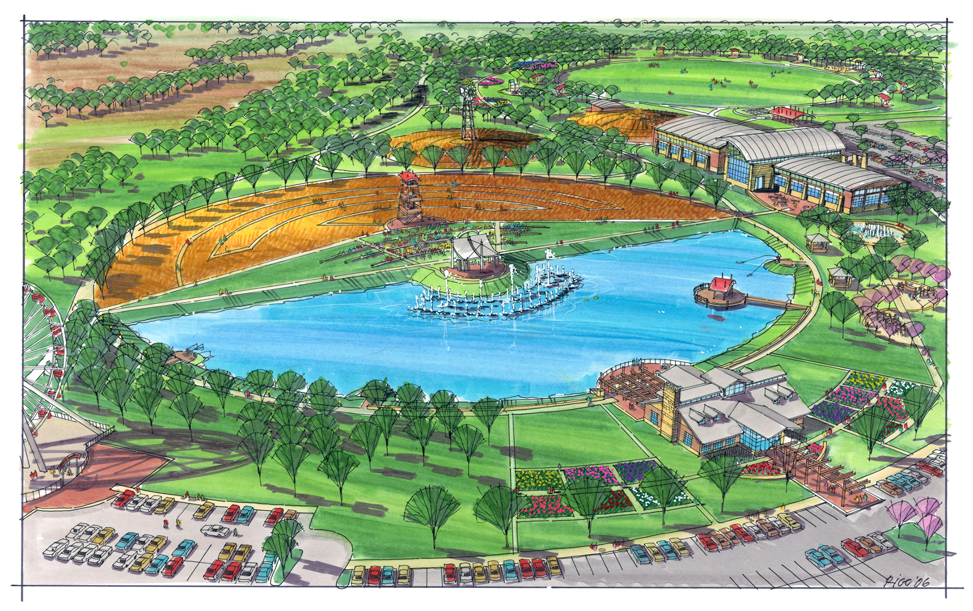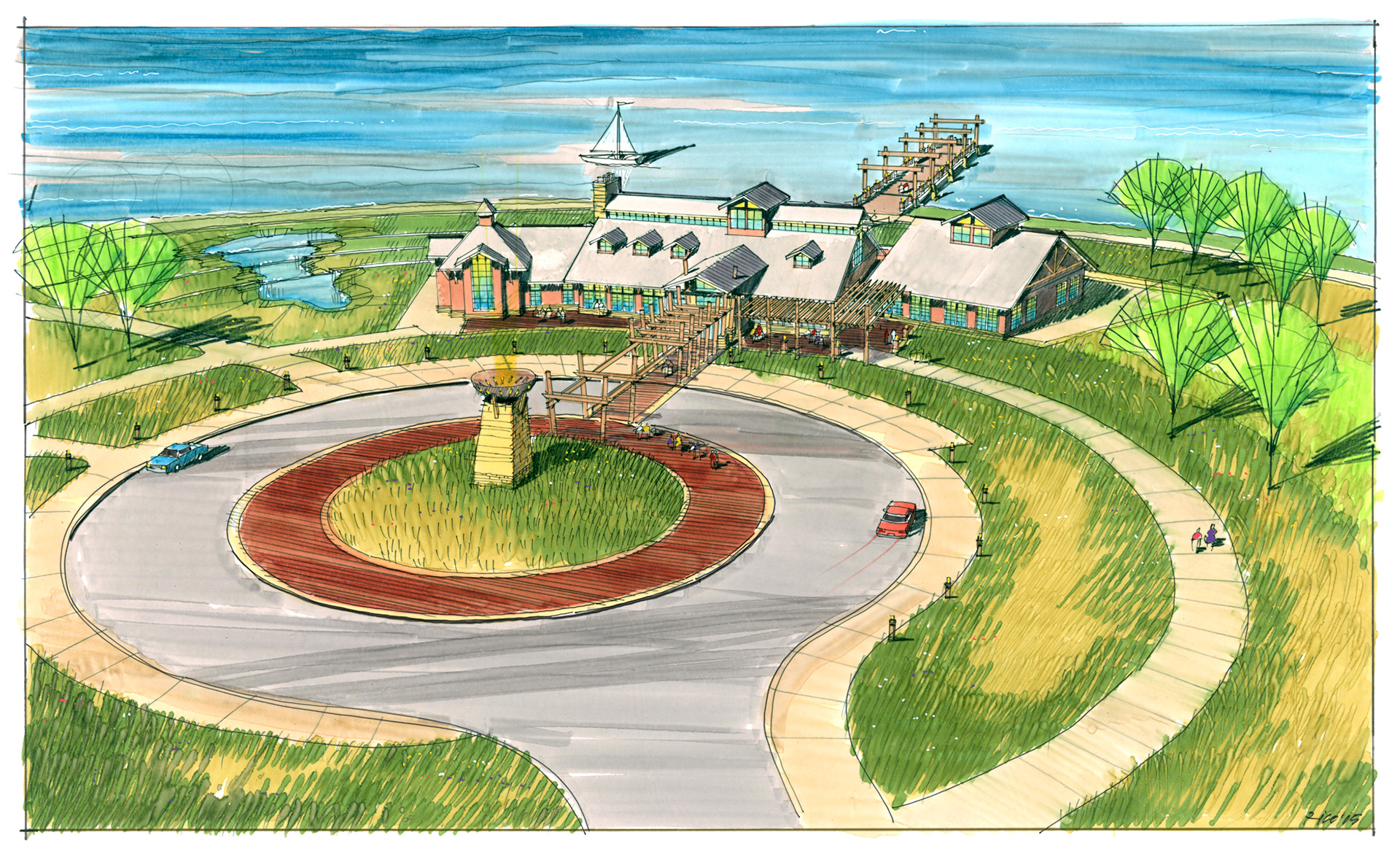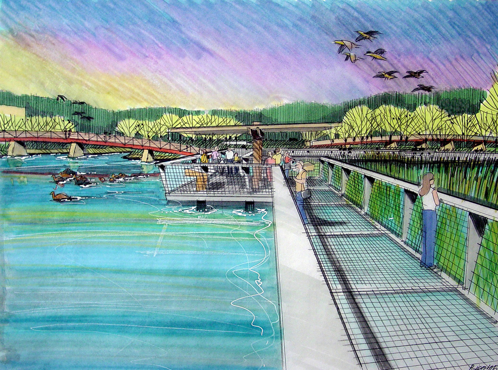 A variety of graphics utilizing analog drawing methods. Media: Ink on trace or bond and rendered with either marker or prismacolor pencil.