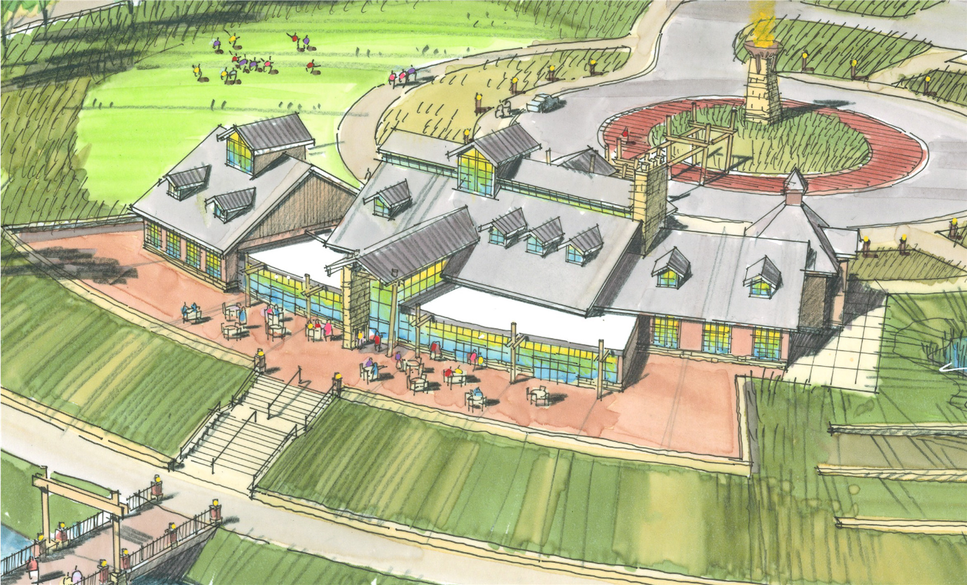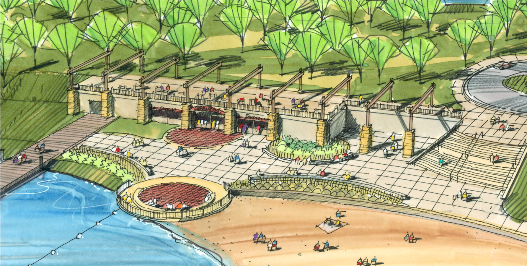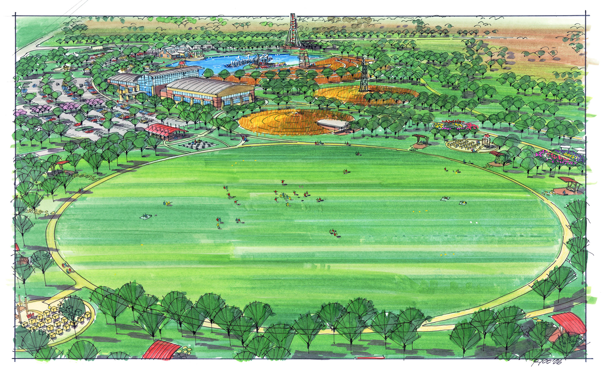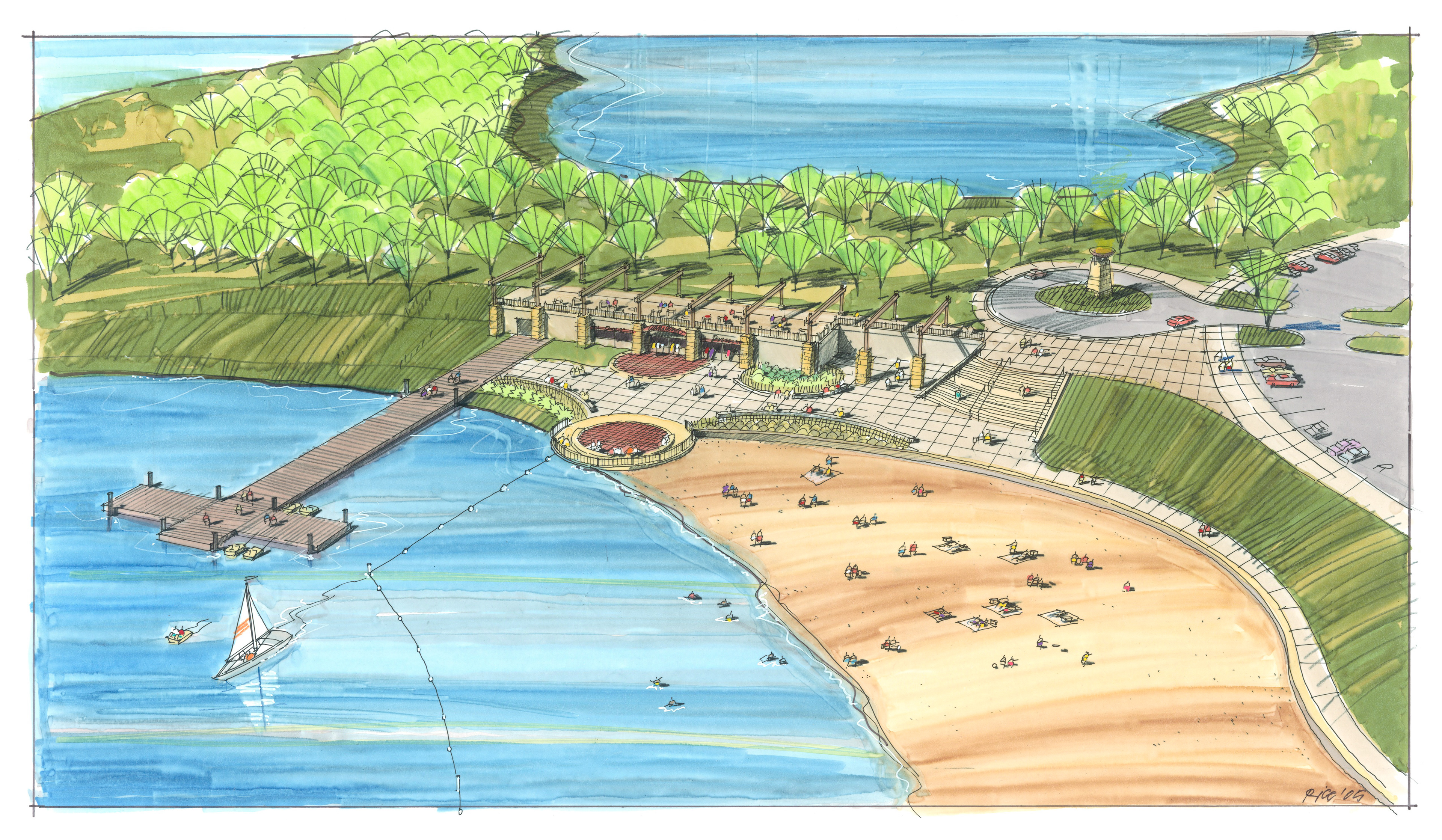 A variety of graphics utilizing analog drawing methods. Media: Ink on trace or bond and rendered with either marker or prismacolor pencil.