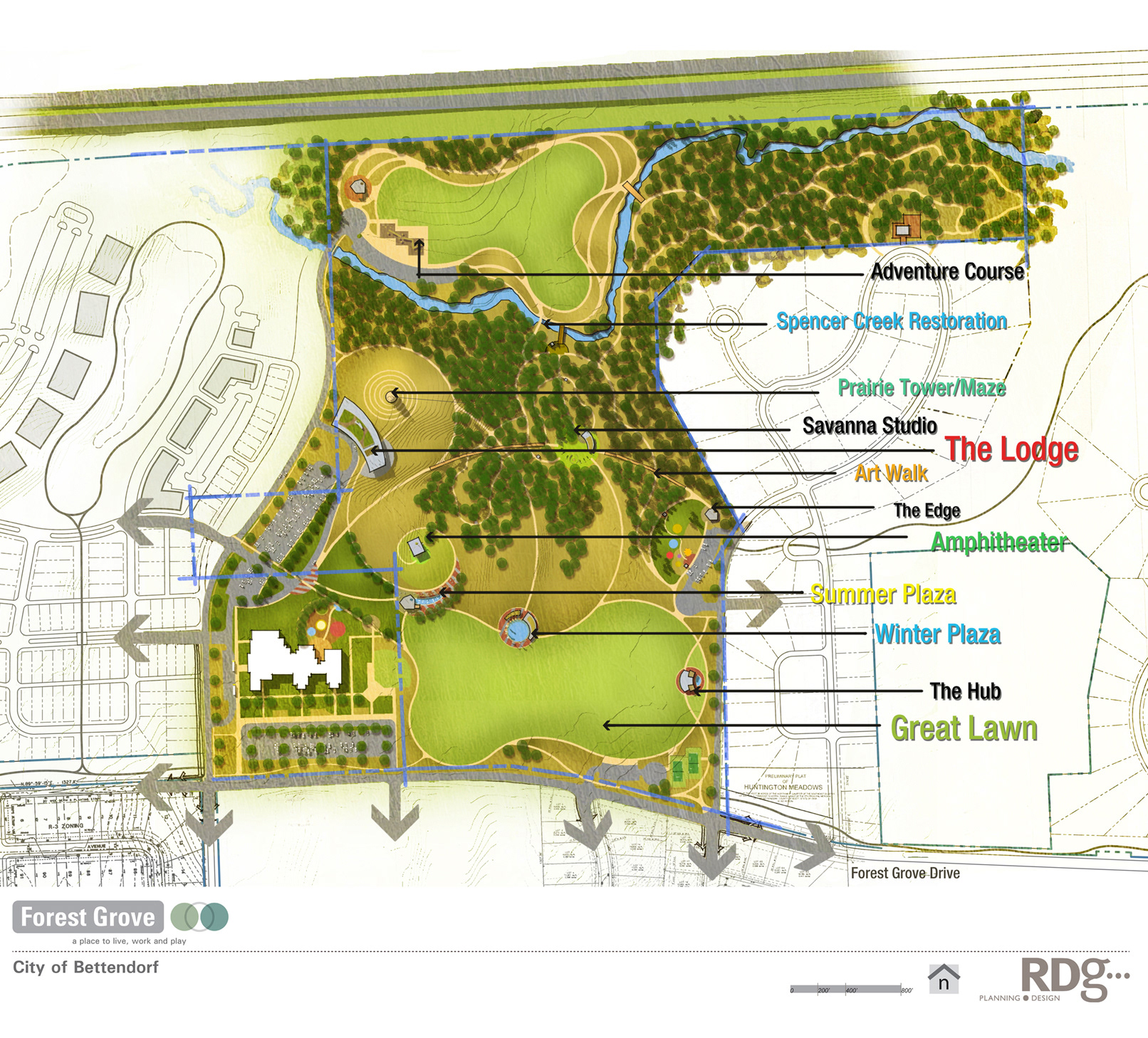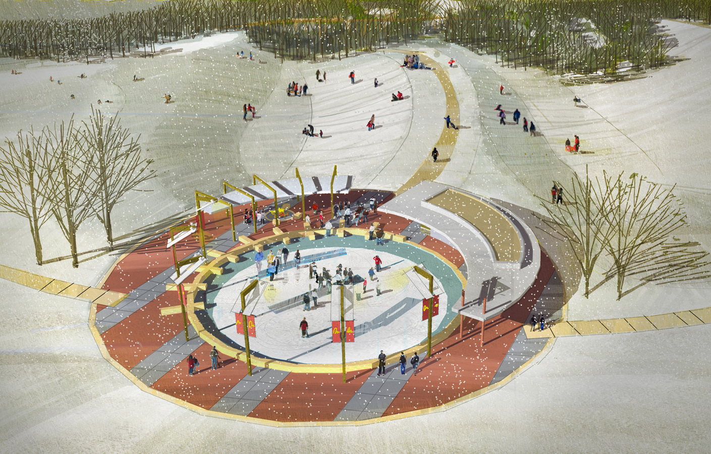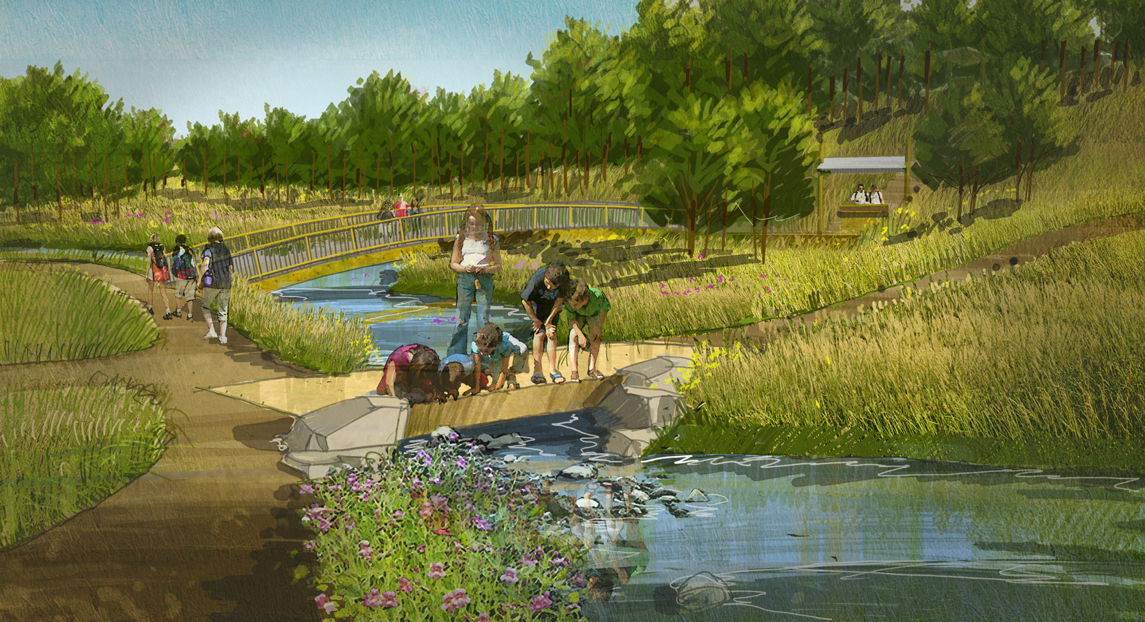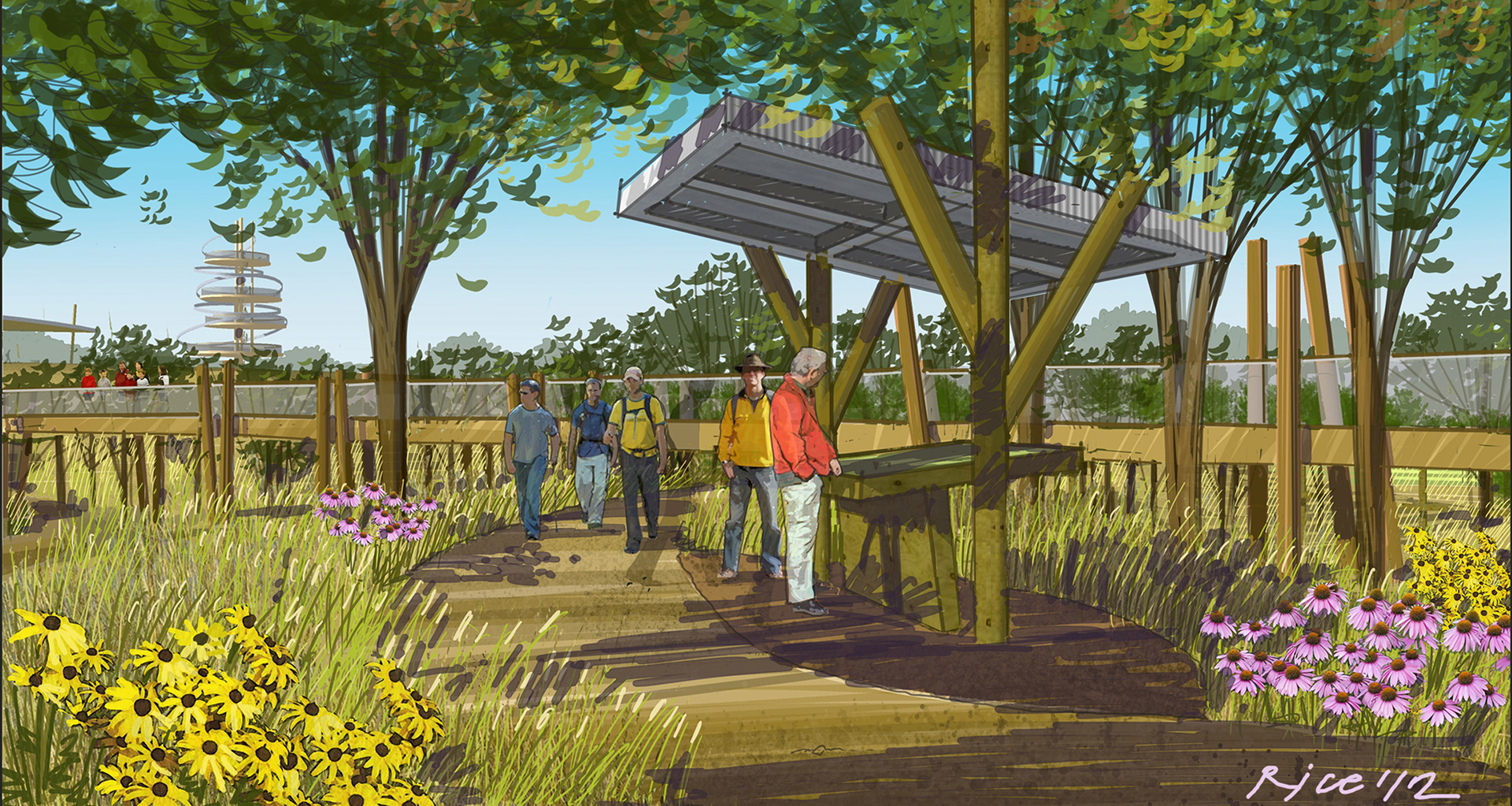 Series of illustrations for a proposed park in Bettendorf, IA. Workflow: Sketch Up, Photoshop. Landscape Architect: RDG Planning and Design.