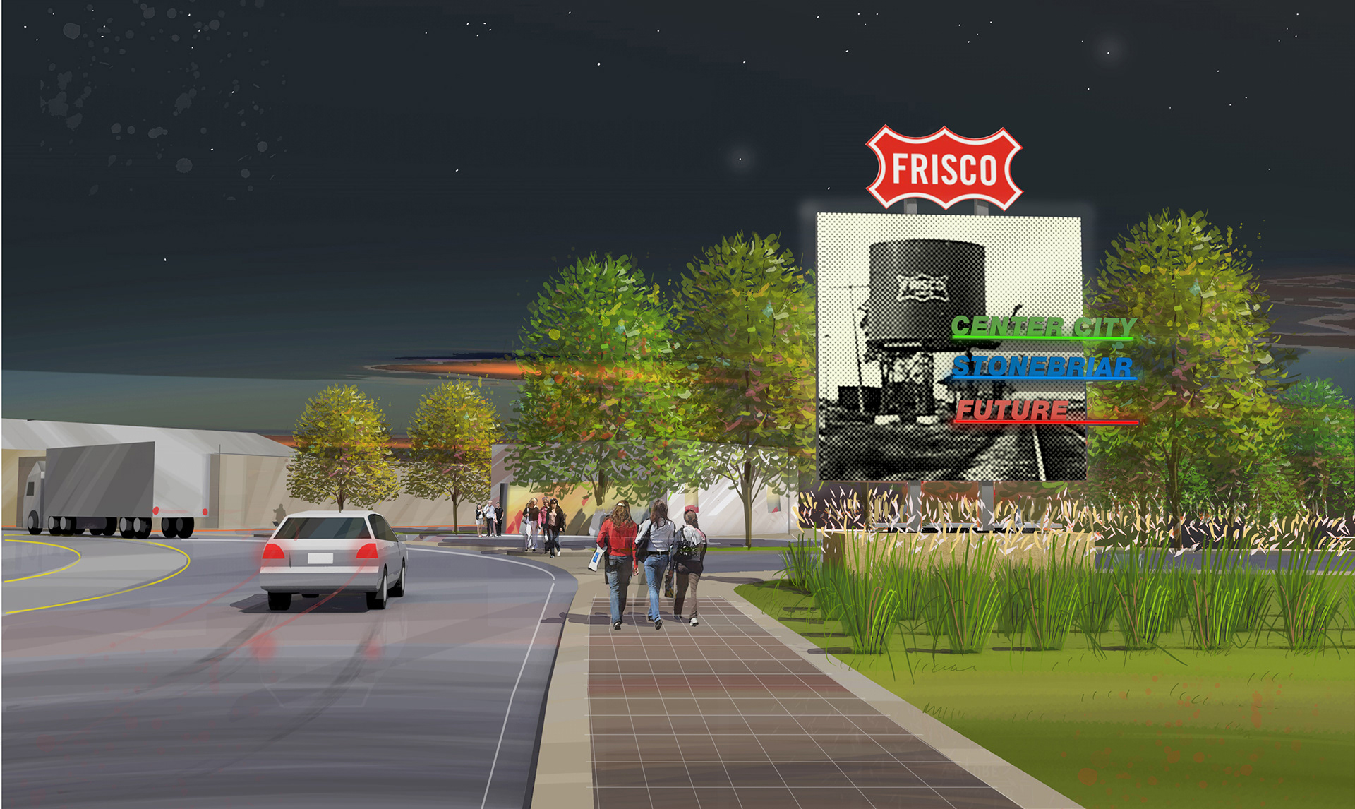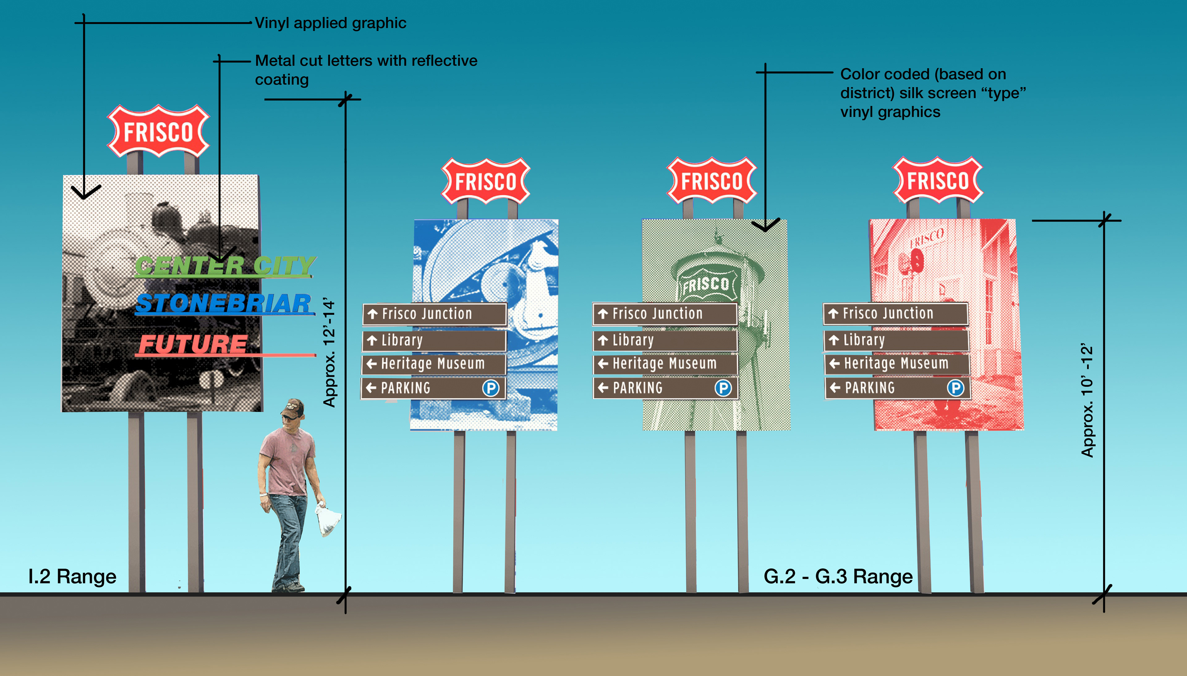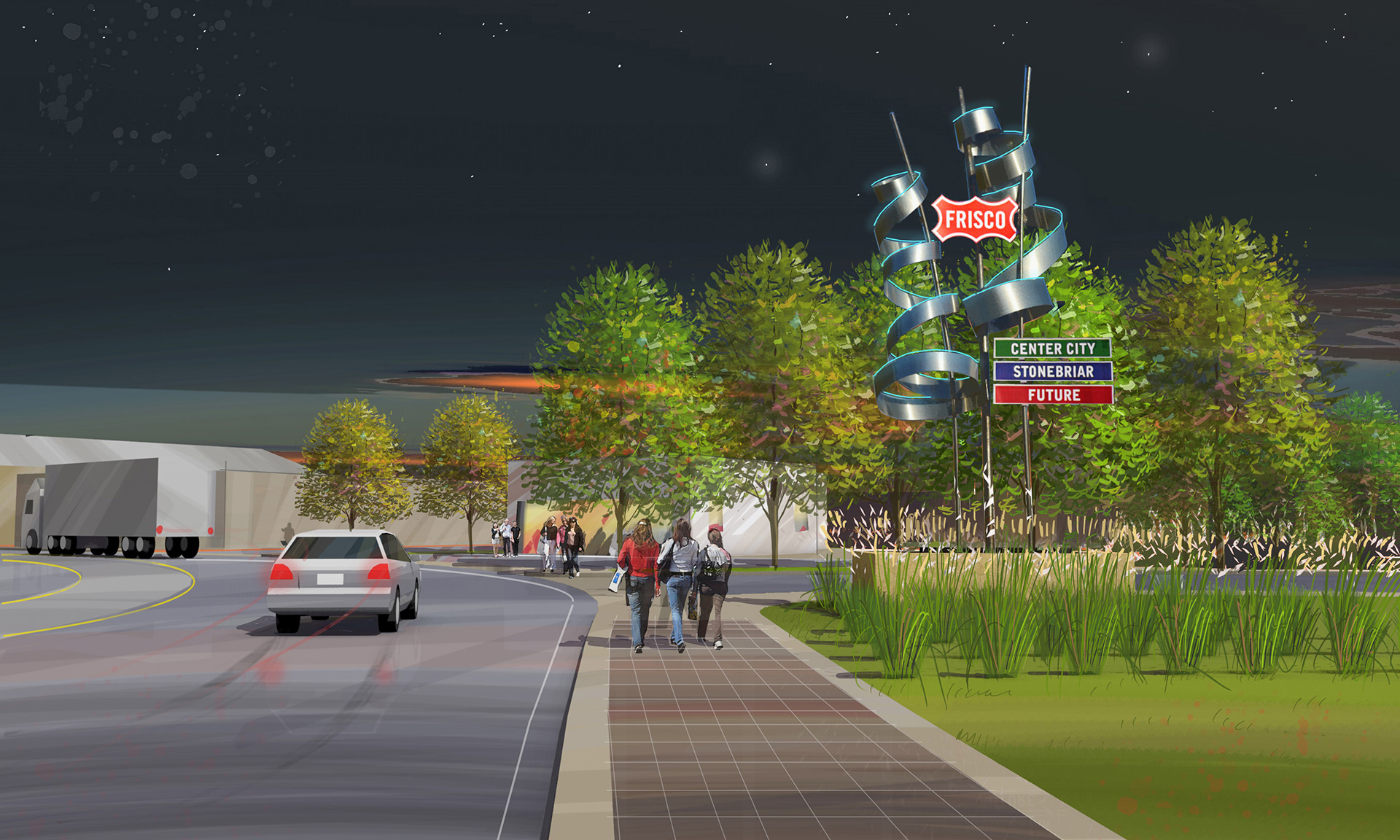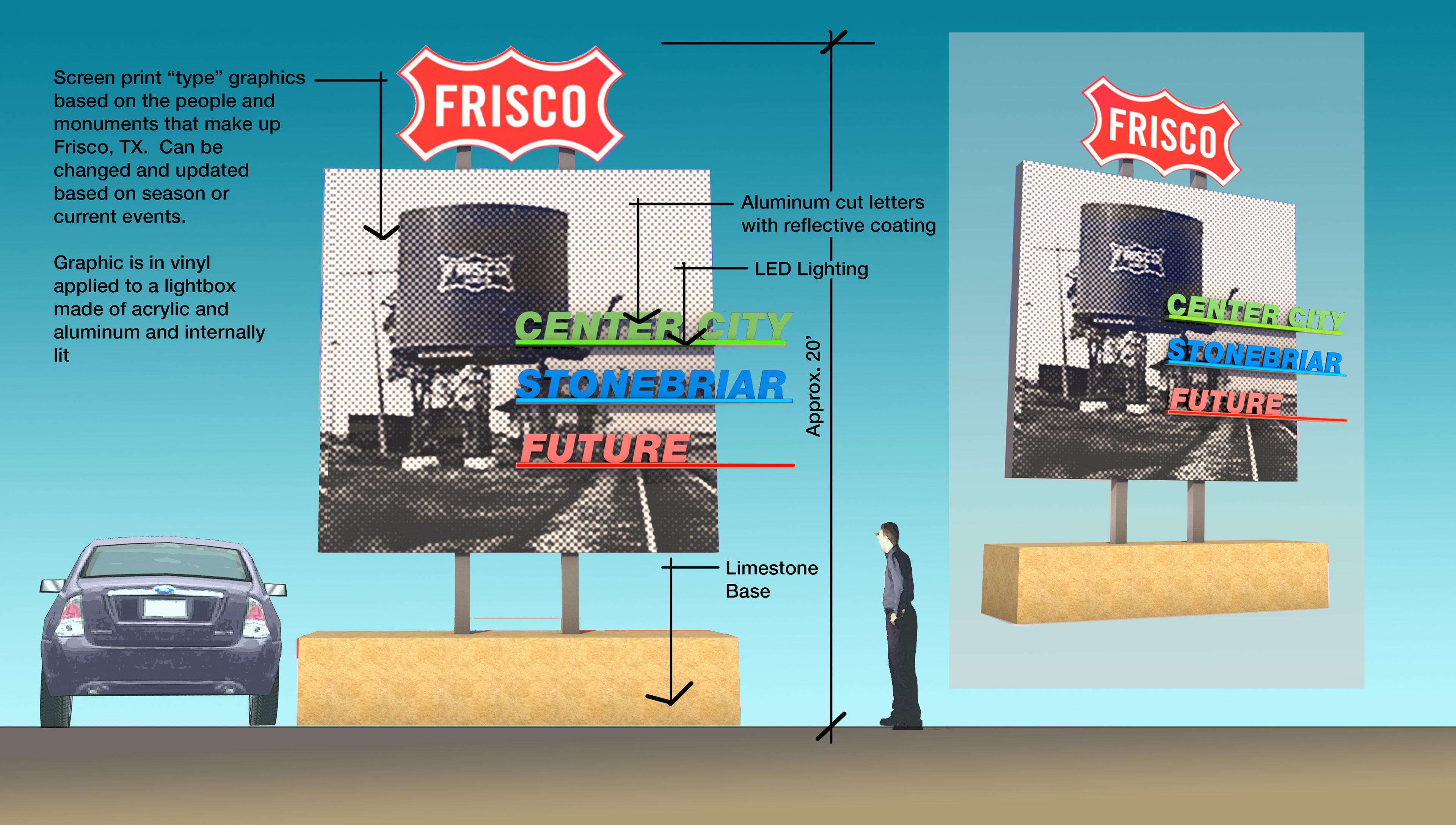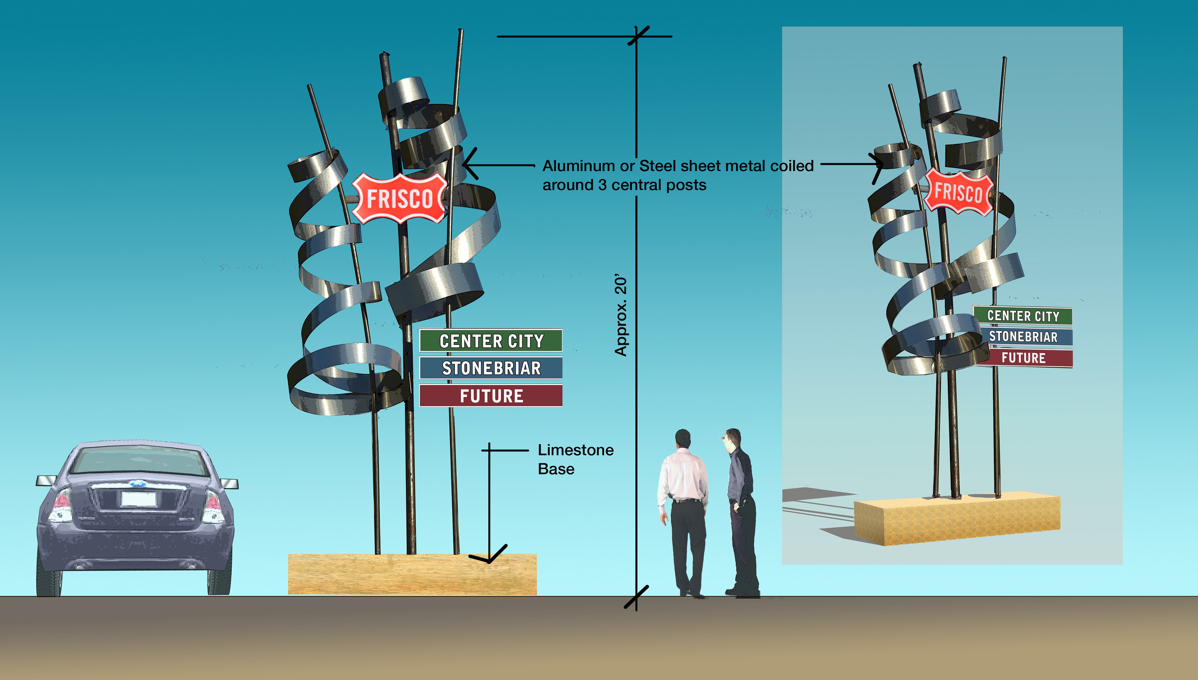 Study to create a visual identity for the entrance into the town of Frisco, TX.
