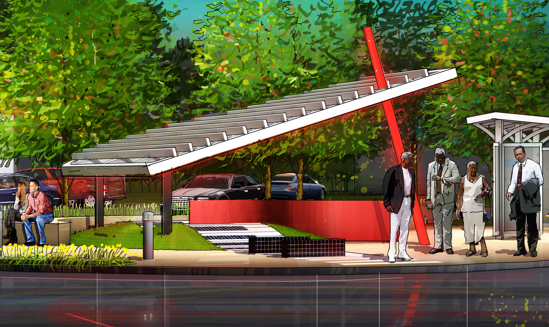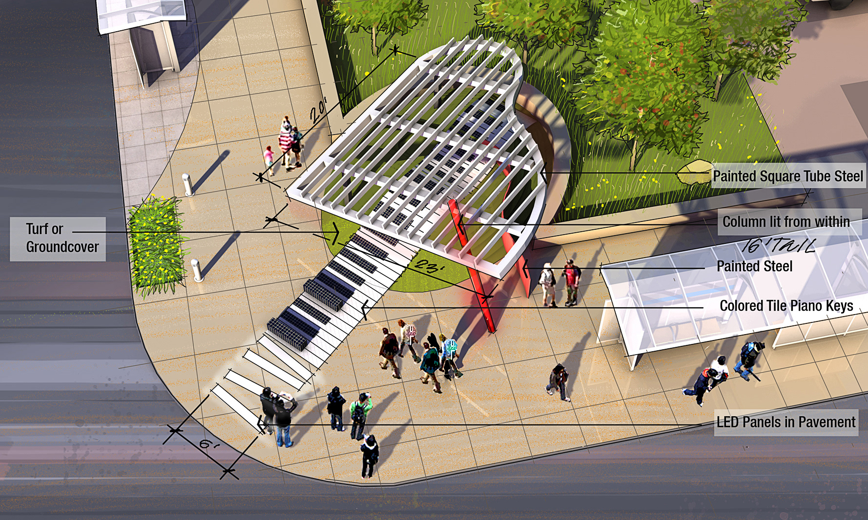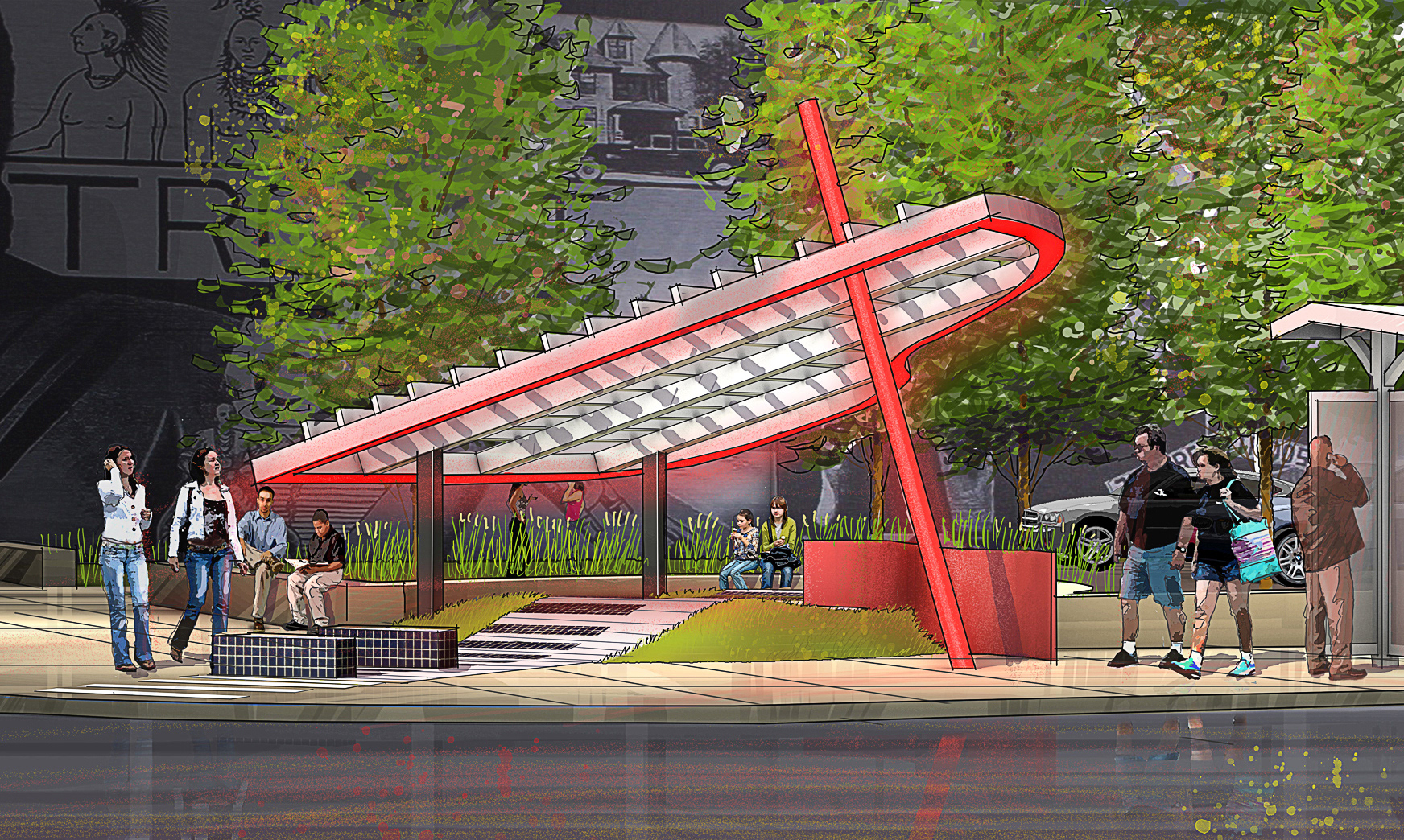 Images created for a public art proposal along Troost Avenue in Kansas City, MO. Workflow: Sketch Up model, rendered in Cinema 4D, and lots of post render in Photoshop. Artist: Travis Rice Studio and RDG Art Studio.